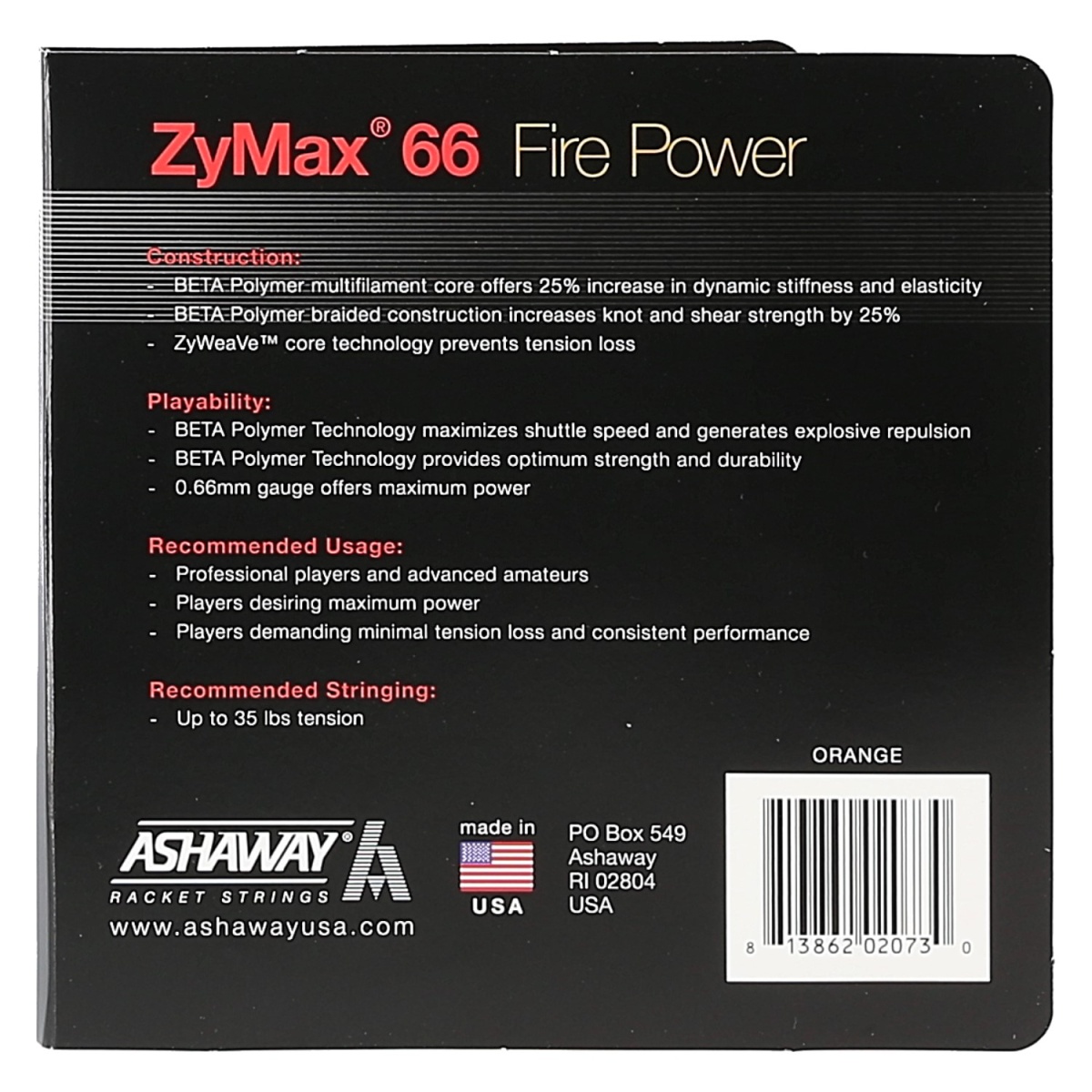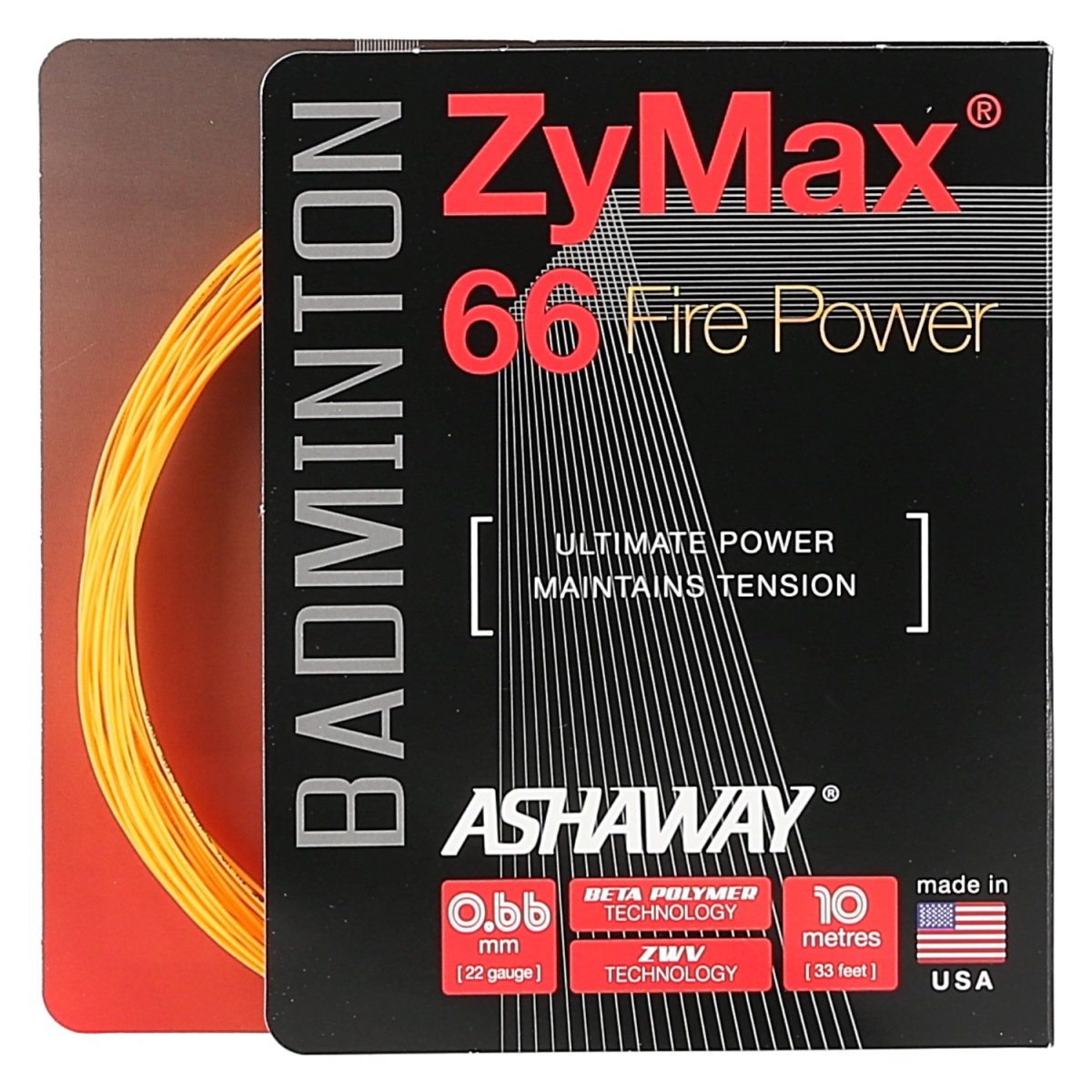 Ashaway Badminton String Zymax 66 Fire Power orange 10m Set