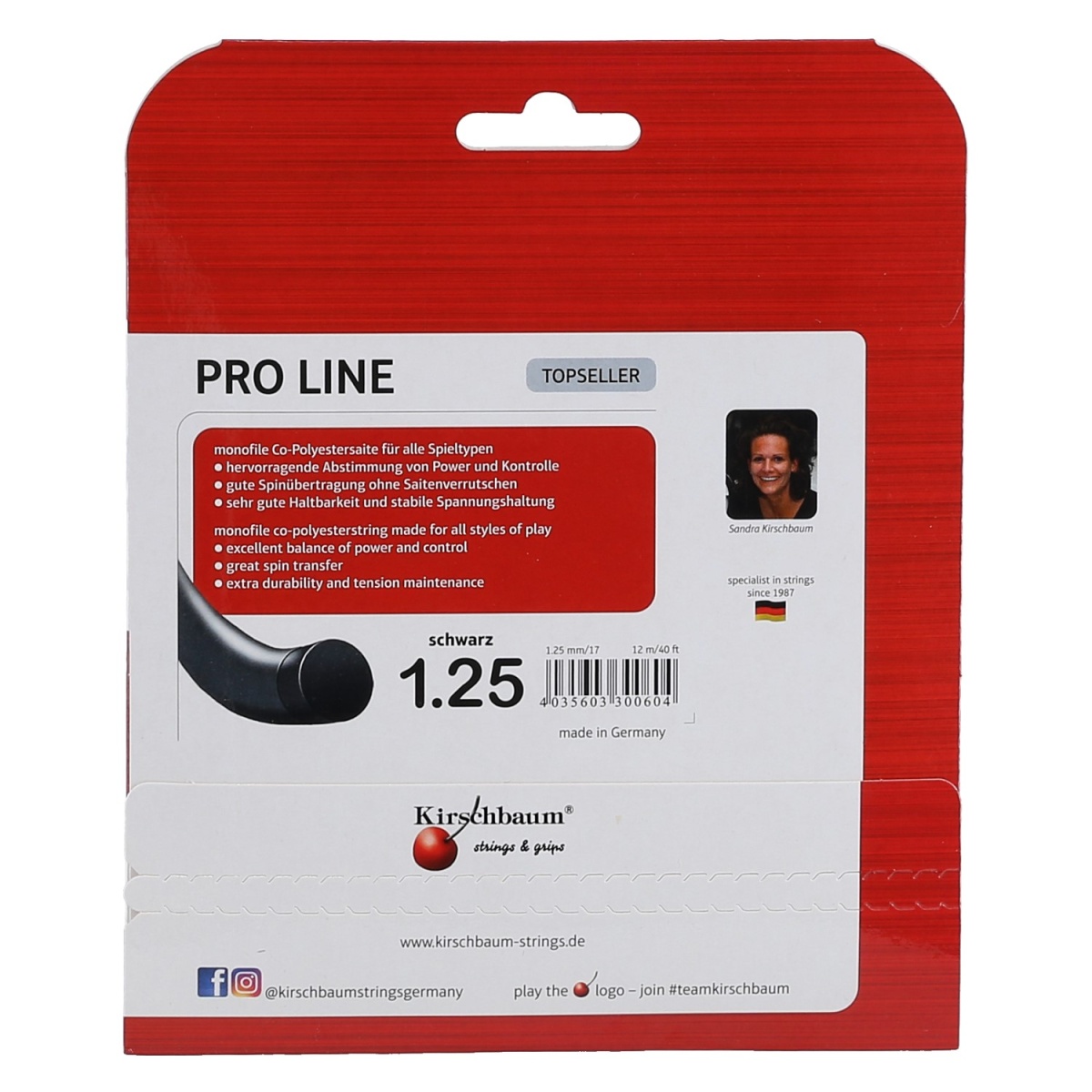 Kirschbaum Tennis String Pro Line No II (Durability+Control) black 200m roll