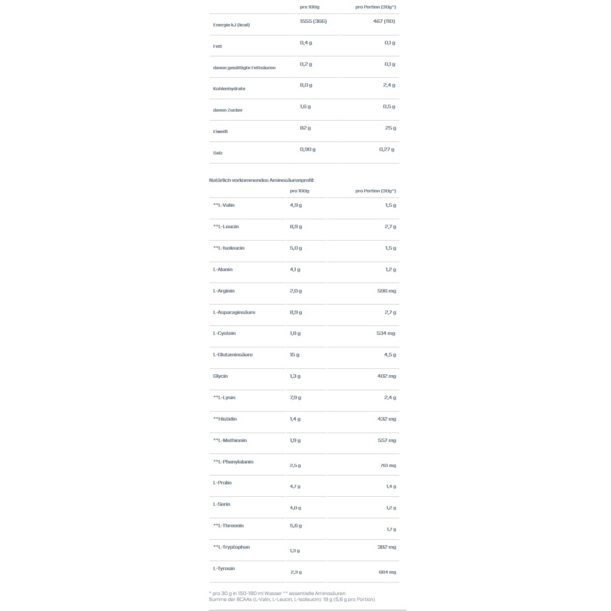 • Each serving contains 5.6-5.8 g of BCAAs and 2.6-2.7 g of the important amino acid L-Leucine, depending on the flavor