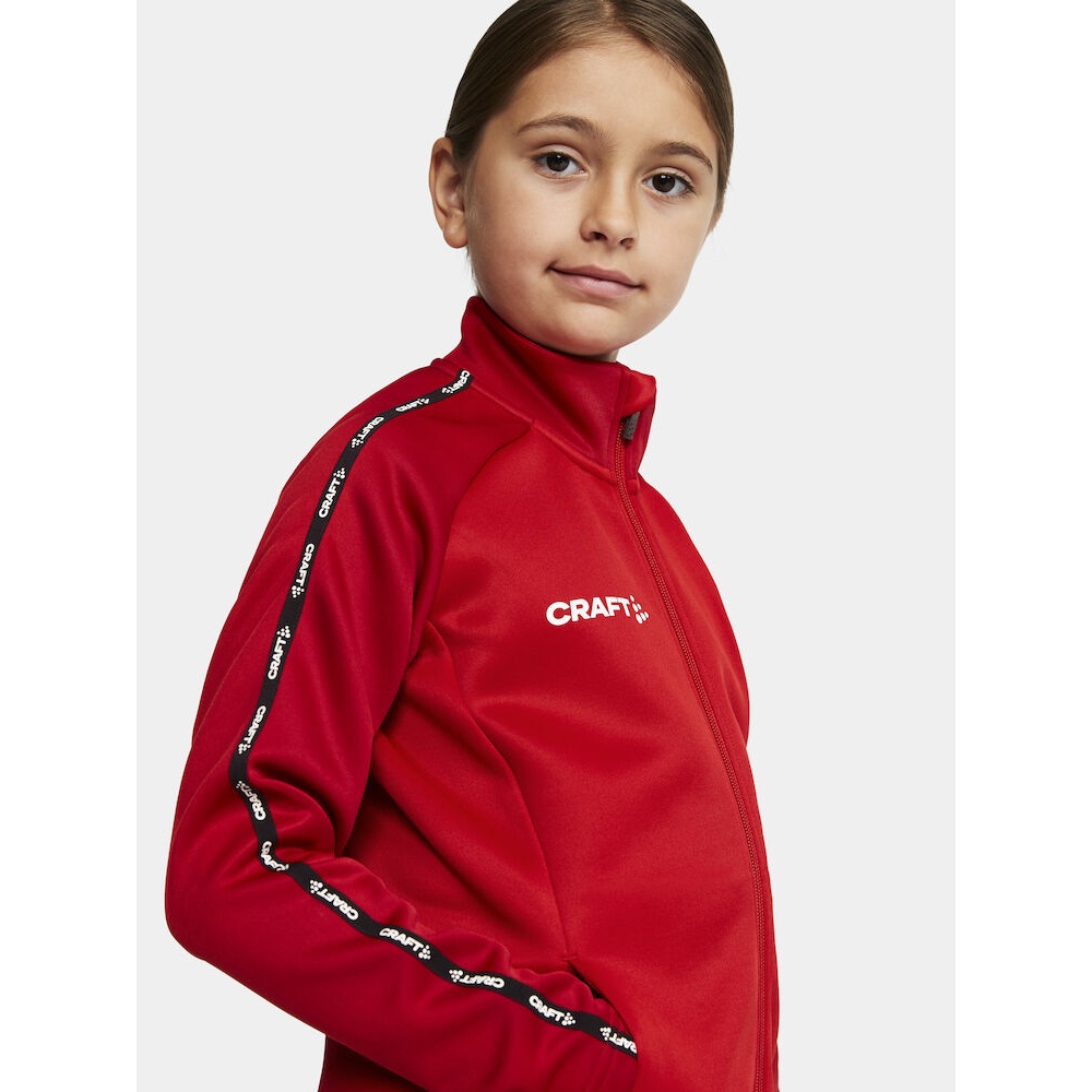 Craft Sport Training Jacket Squad 2.0 Full Zip (with side pockets, elastic functional material) red Kids