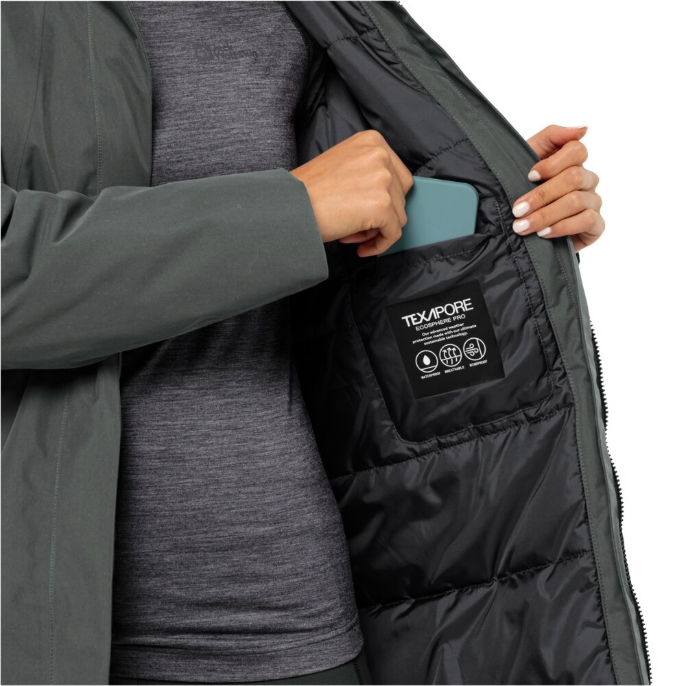 Jack Wolfskin Winter Coat Salier Coat (detachable hood, waterproof and windproof) dark green Women