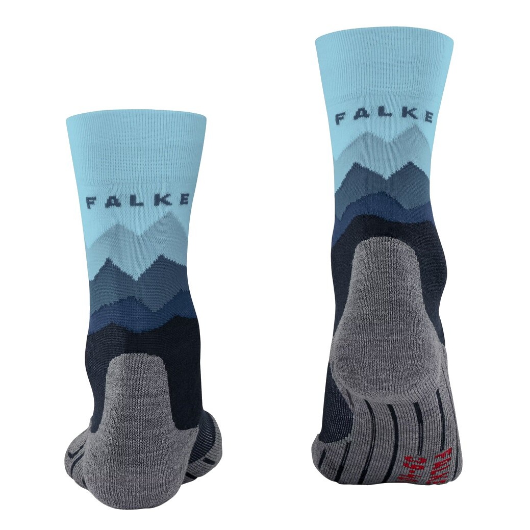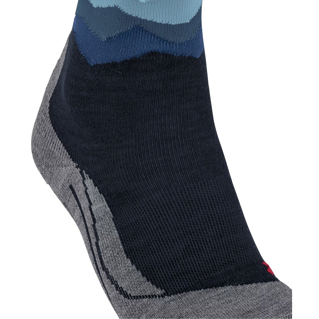 • the mountain silhouette incorporated in the shaft in various color shades makes the hiking sock a real eye-catcher