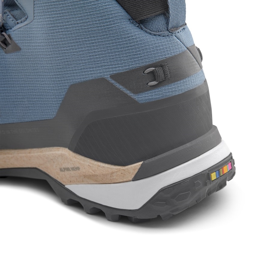 • the Alpine Hemp midsole in the forefoot area has been developed according to a circular-oriented manufacturing concept, using recycled hemp waste and new hemp while reducing the use of new EVA