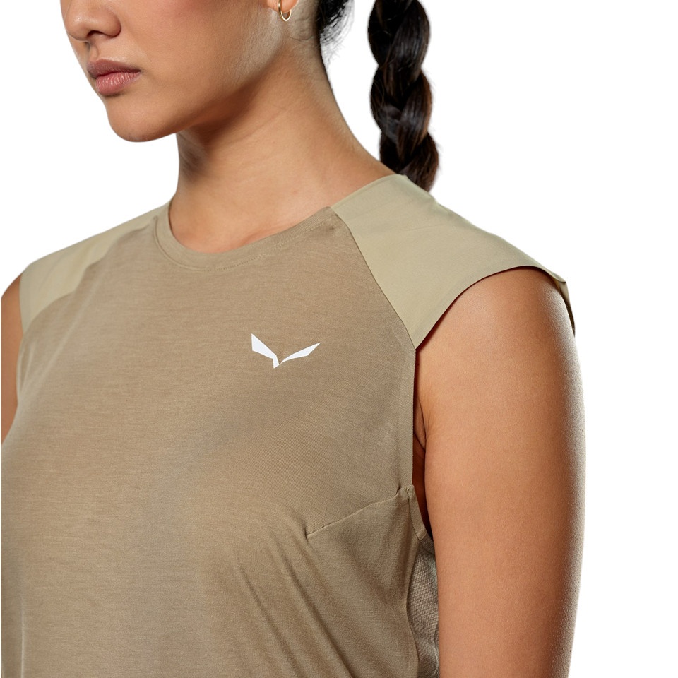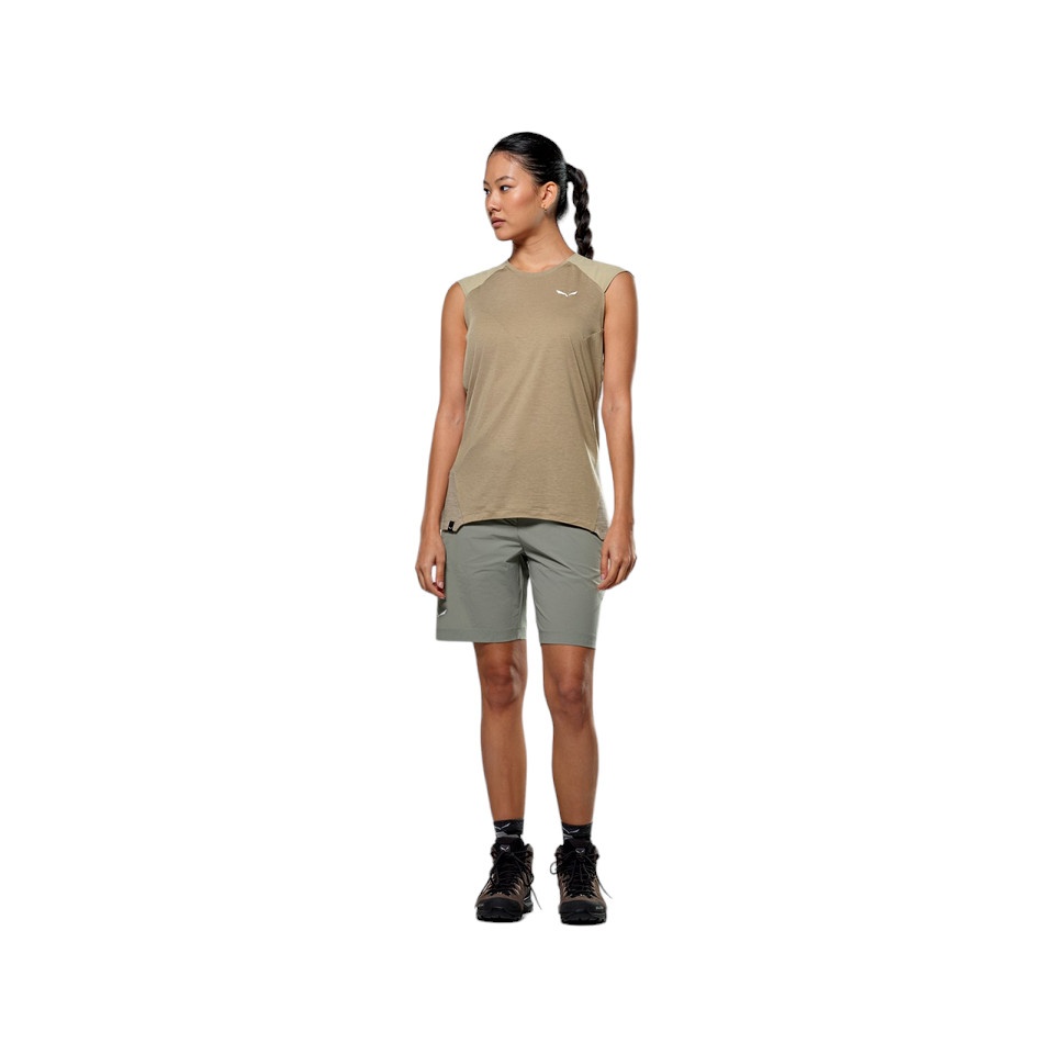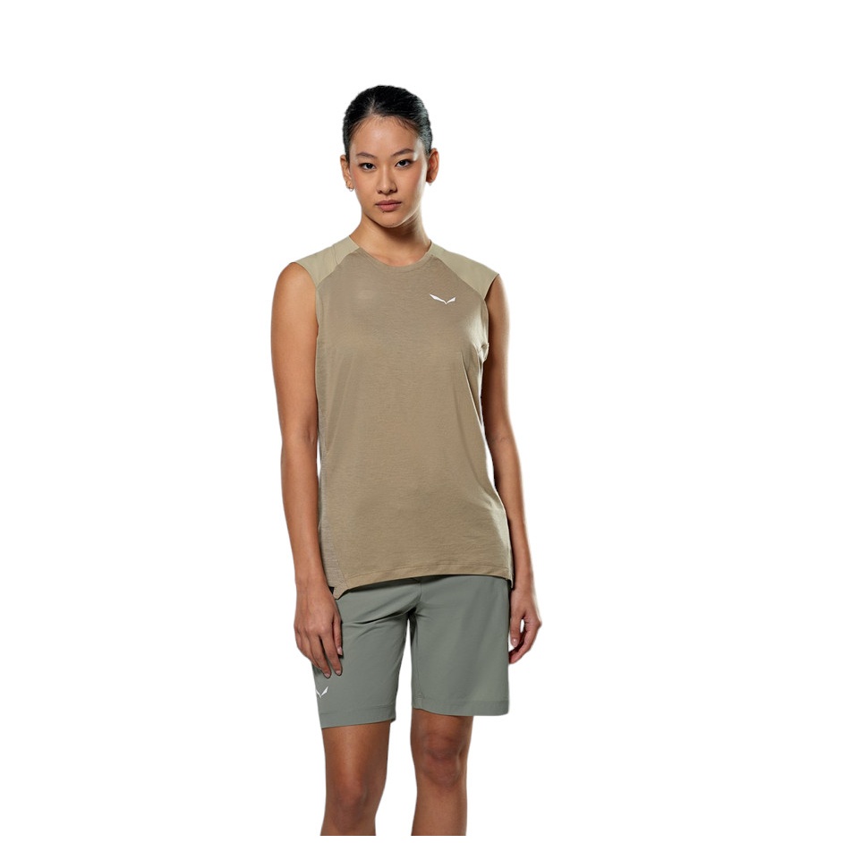Salewa Tank Top Puez Merino Hybrid (Merino wool, ideal thermal regulation) sand brown ladies