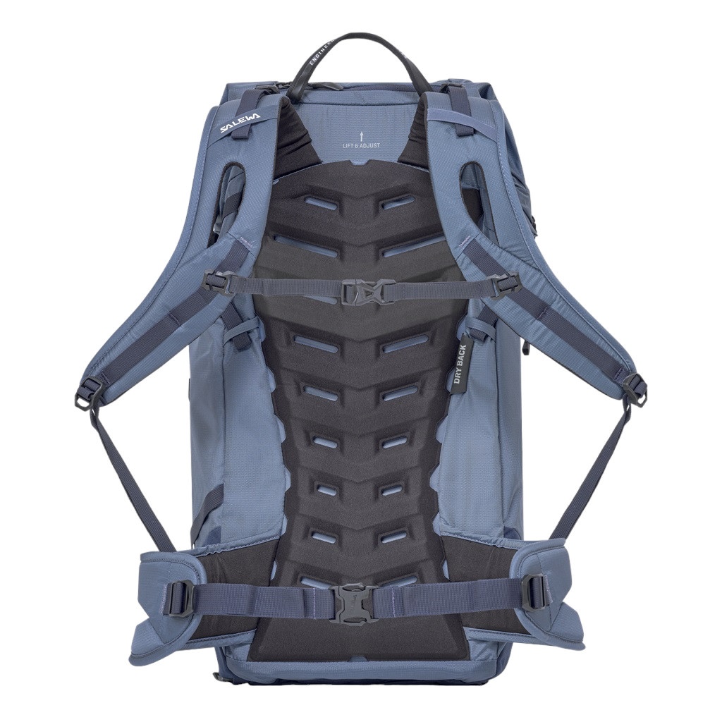 • our easily adjustable Dry Back custom carrying system was developed as part of our extensive research and development work together with mountain sports enthusiasts and professional climbers in the Dolomites