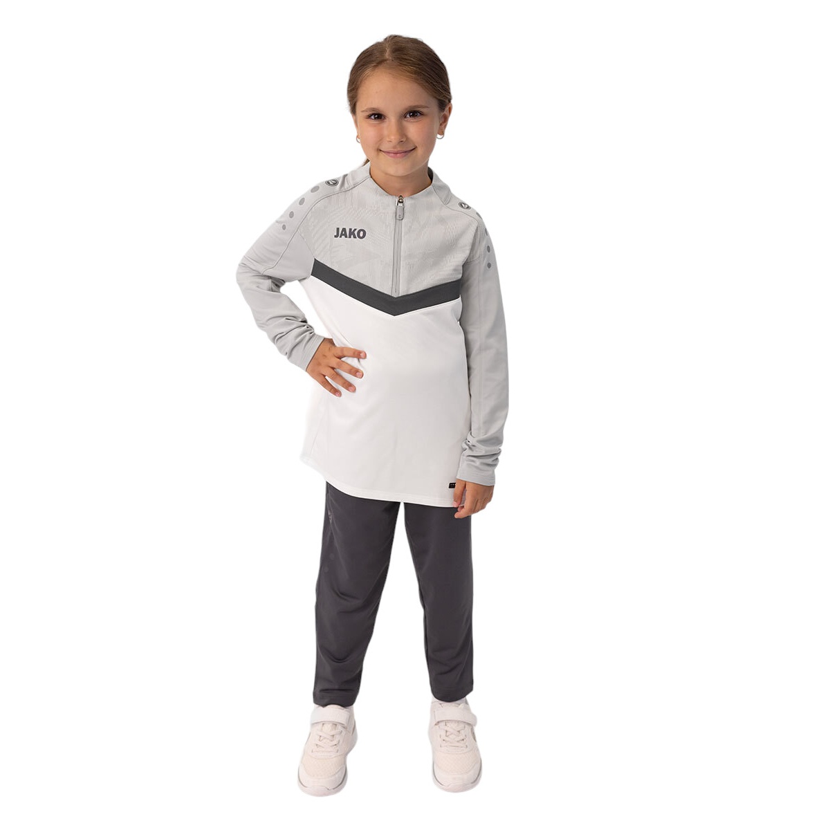 JAKO Long Sleeve Ziptop Iconic (comfortable fit) white/grey/charcoal grey children