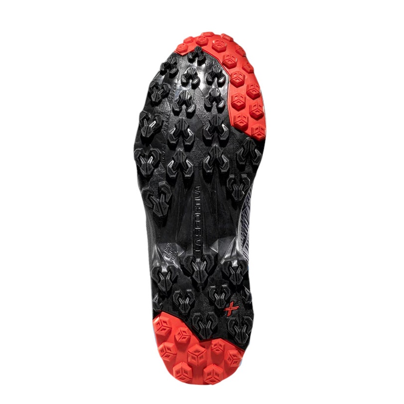 • Sole: Dual Compound Frixion XT Red with Trail Rocker+ Impact Brake System for Mountain Running.