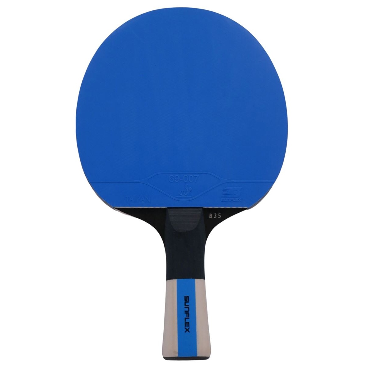 • Training racket sunflex COLOR COMP B35 with 1.8 mm sponge and Taipan surface, ITTF approved, Parabolic Grip, Ergo Grip and concave handle