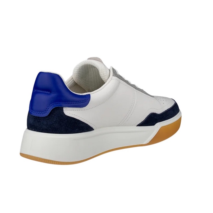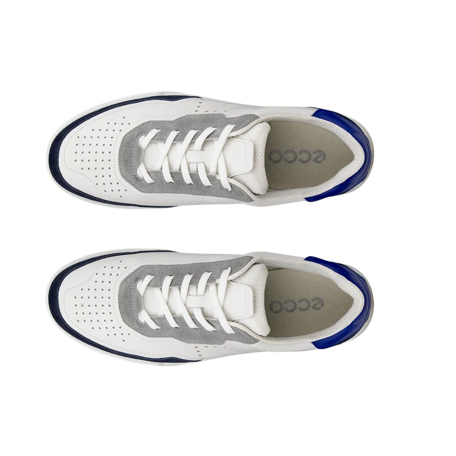 ECCO Street Court Lea Sneakers (Premium Leather) white/navy blue men's