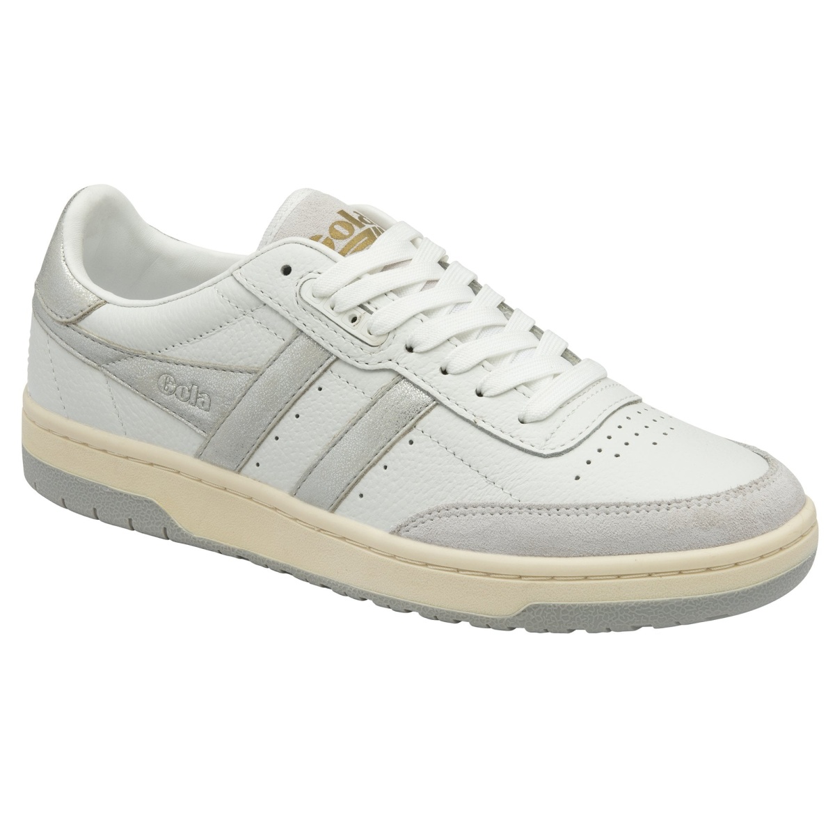 • Gola Wingflash highlights on the sides of this classic Gola women's sneaker in white leather upper radiate modern chic with relaxed tennis credibility and warm nostalgia