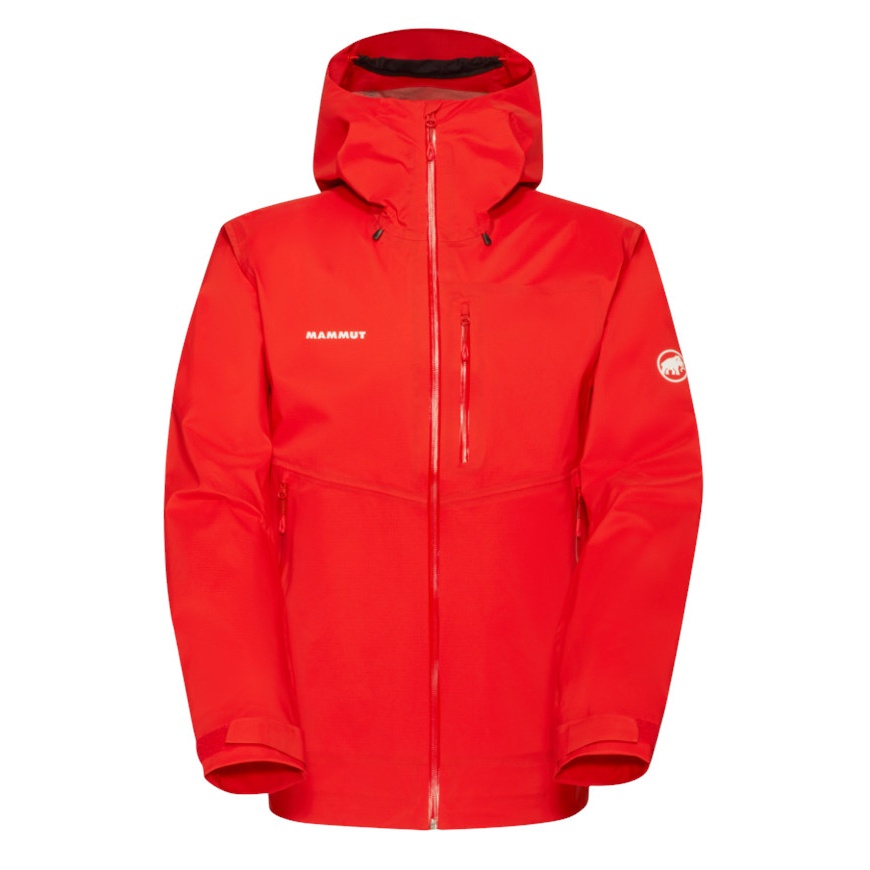 • the durable and stretchy, three-layer Mammut DRY Tour material is breathable, waterproof and PFC-free. Practical features make the hardshell jacket the ideal companion in any weather and for all activities: pockets that are easily accessible even with a backpack on and a helmet-compatible hood with reinforced visor