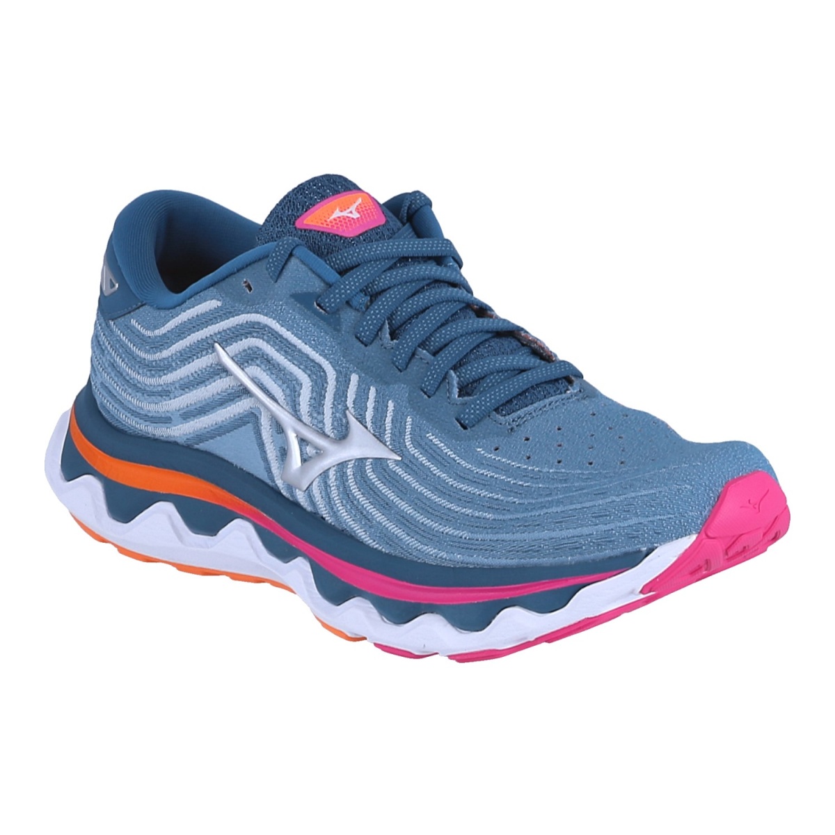 • The asymmetrical MIZUNO WAVE and the integrated rubber wall, as well as the wide outsole design, improve stability without reducing cushioning.