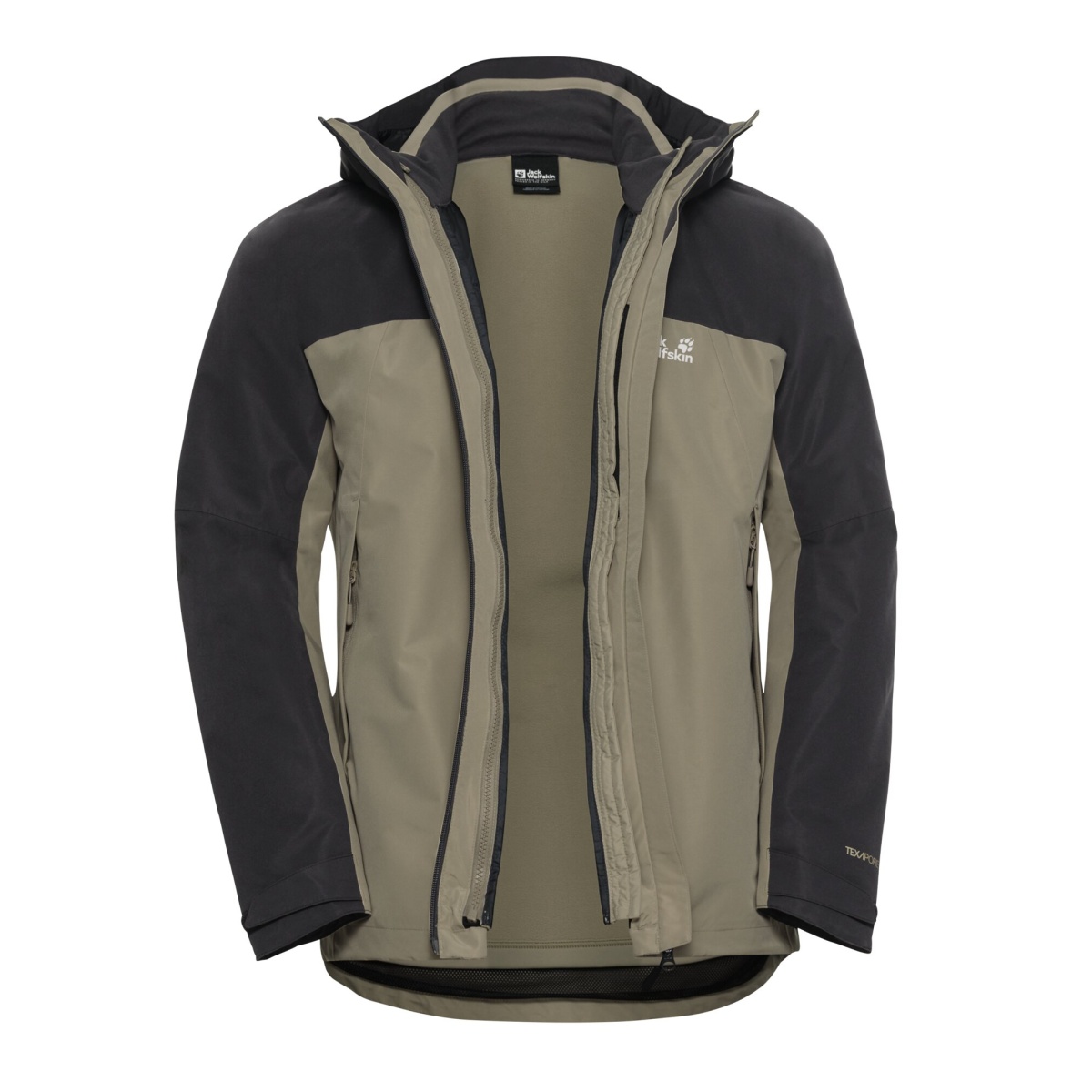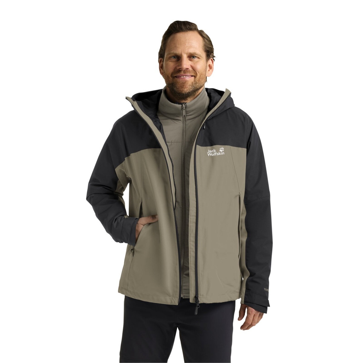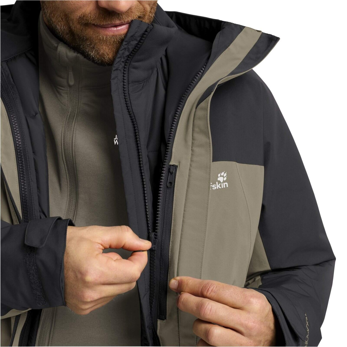 Jack Wolfskin Transition Hiking Jacket Wild Places 3in1 (waterproof, windproof) grey/light brown men's