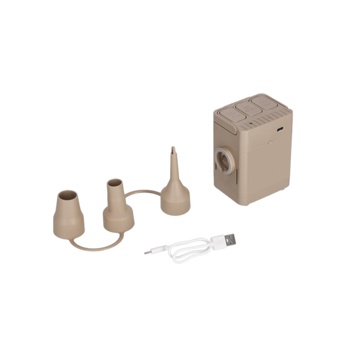 • the beige 40W pump is equipped with three interchangeable nozzles that fit various valve types.