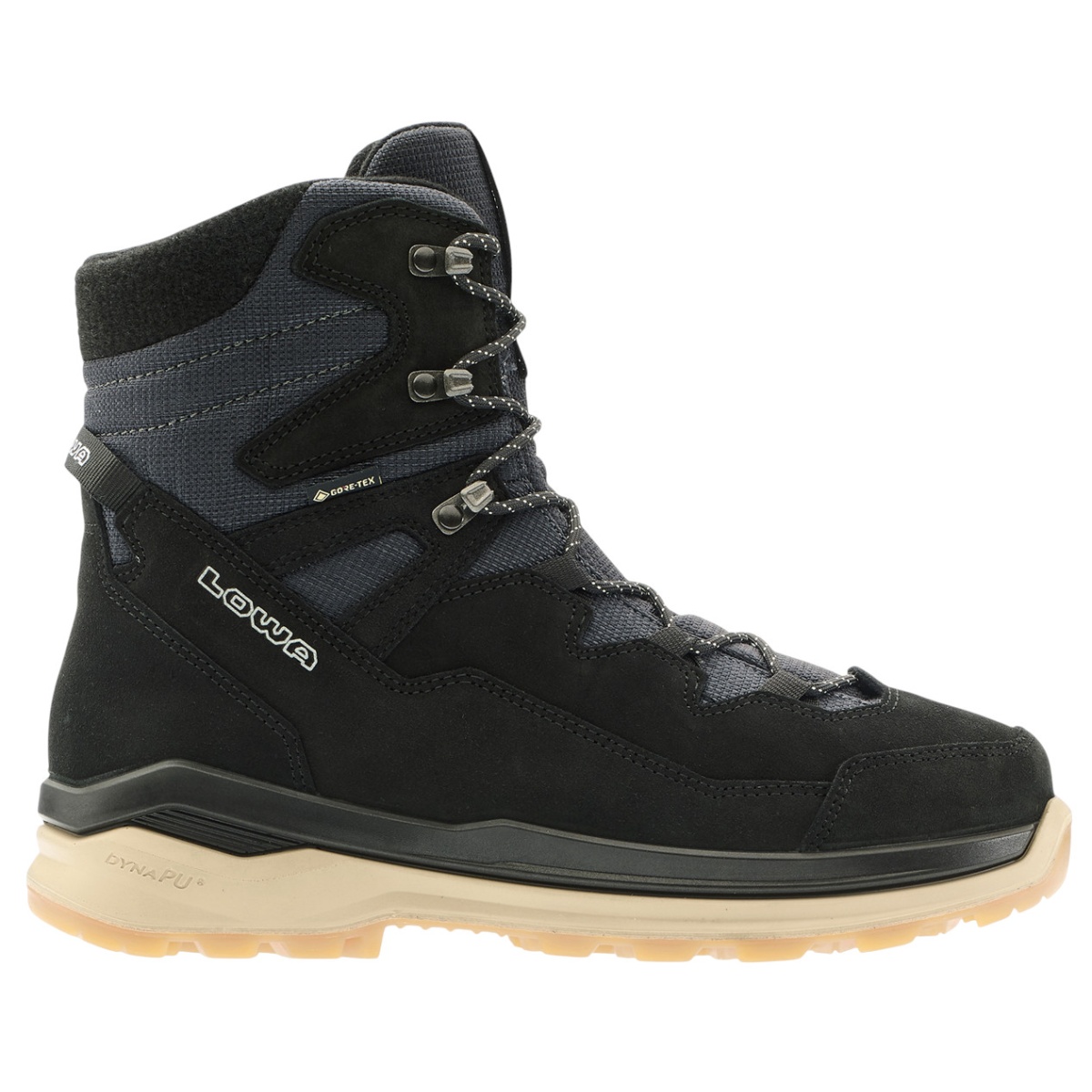 • The newly designed midsole made from flexible LOWA® DYNAPU® provides excellent cushioning, while the outsole made from proprietary rubber compound offers grip even on challenging surfaces of snow & ice with its deep tread pattern.