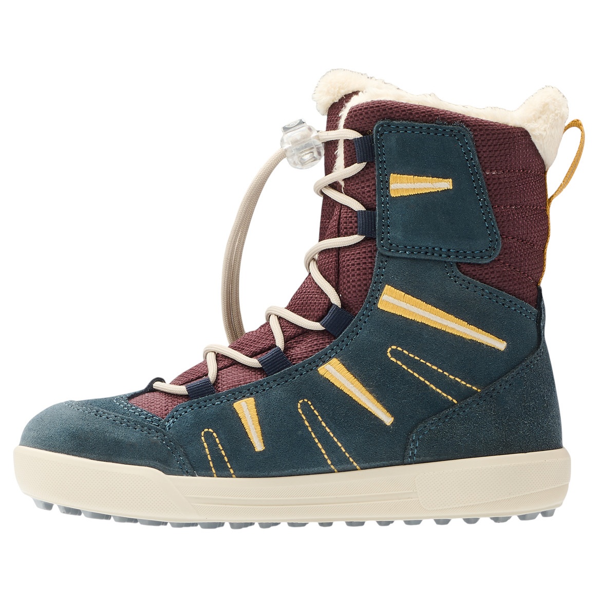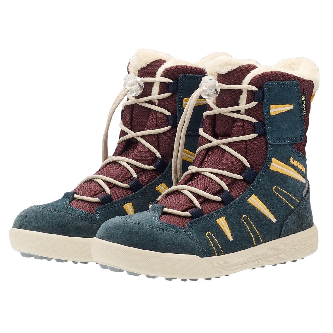 • The LUCY 2 GTX HI JR is ready for any snowball fight and sledging adventure: The high-cut winter boot shines with its robust suede-textile mix, grippy outsole, and practical quick-lacing system.