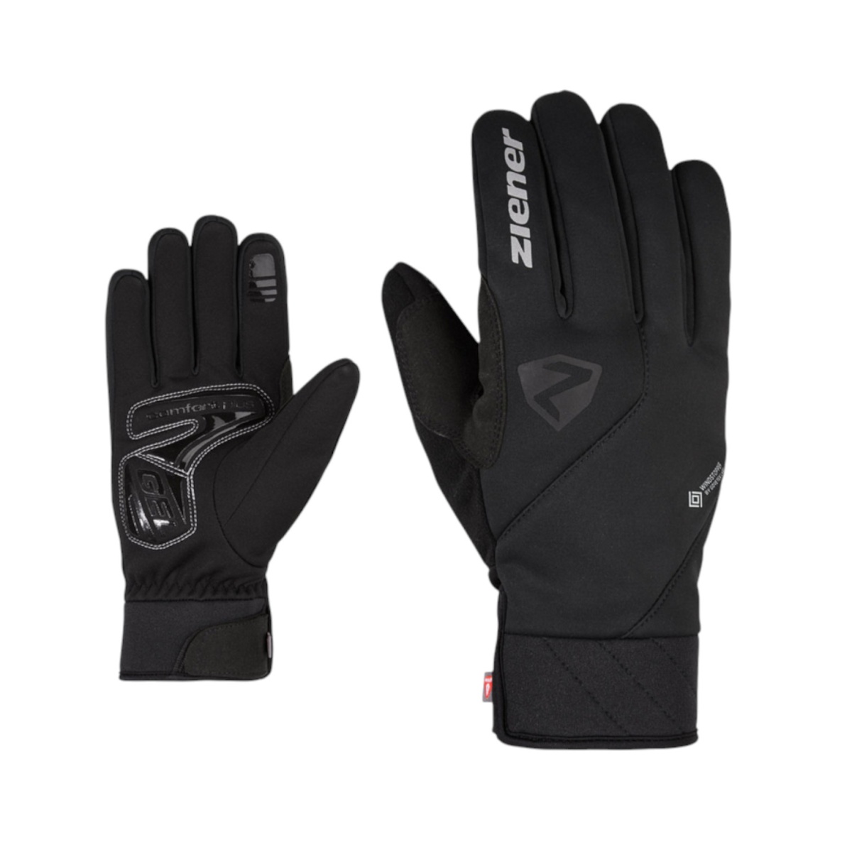 • the warm, windproof ZIENER Winter cycling gloves DONNI-Z WS PR impress with a non-slip palm with gel padding – for full control and comfort on the handlebars.