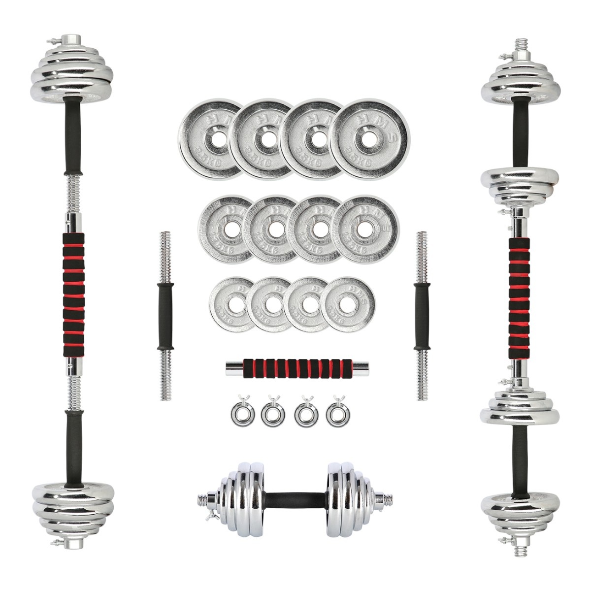 • STC21 HMS is a set of chrome-plated dumbbells in a case, which can also serve the function of a barbell.